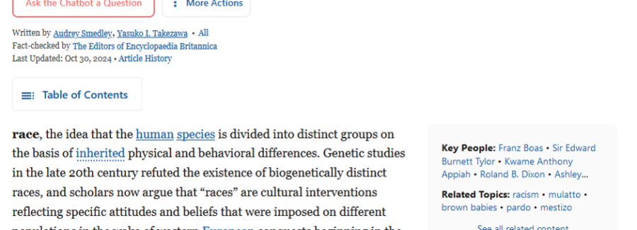 Britannica defines race as "the idea that the human species is divided into distinct groups on the basis of inherited physical and behavioral differences. Here is a comprehensive article covering the history of race, the term's many meanings, and its use and science and culture.